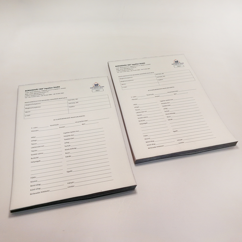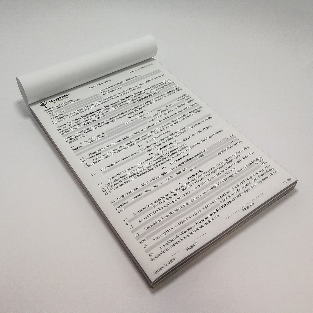 • KÜLÖNBÖZŐ FORMÁTUMOK ÉS MÉRETEK: Az önátírós tömb különféle méretekben és formátumokban elérhető, például A4-es vagy A5-ös kivitelben. A termék lehet 2, 3, 4, de akár 5 példányos is. A tömböt egyedi sorszámozással és megkülönböztető színekkel is elláthatjuk.